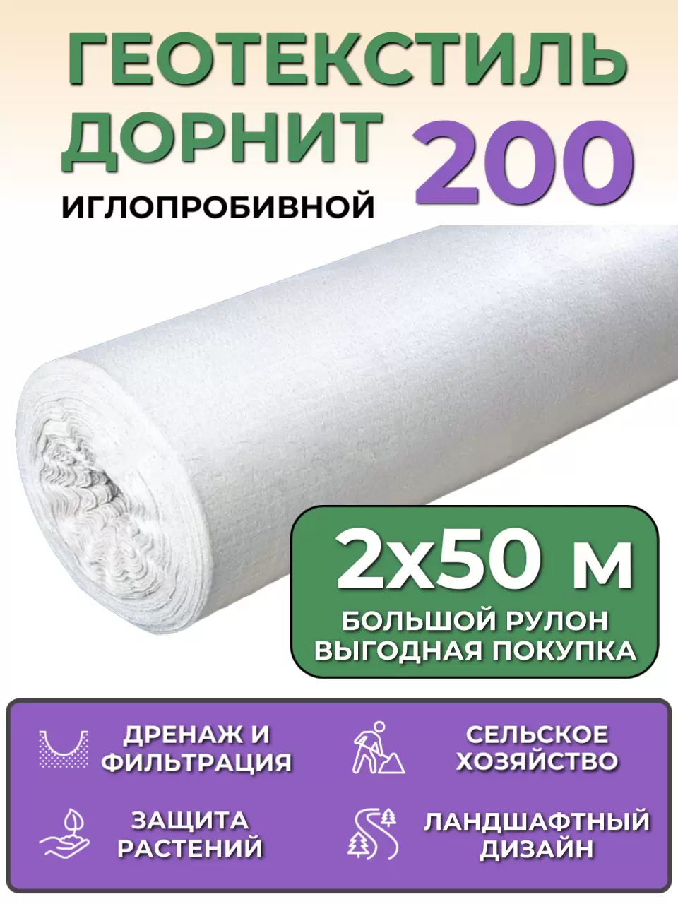 Геотекстиль белый Дорнит с ндс 200 (БЕЛАРУСЬ)