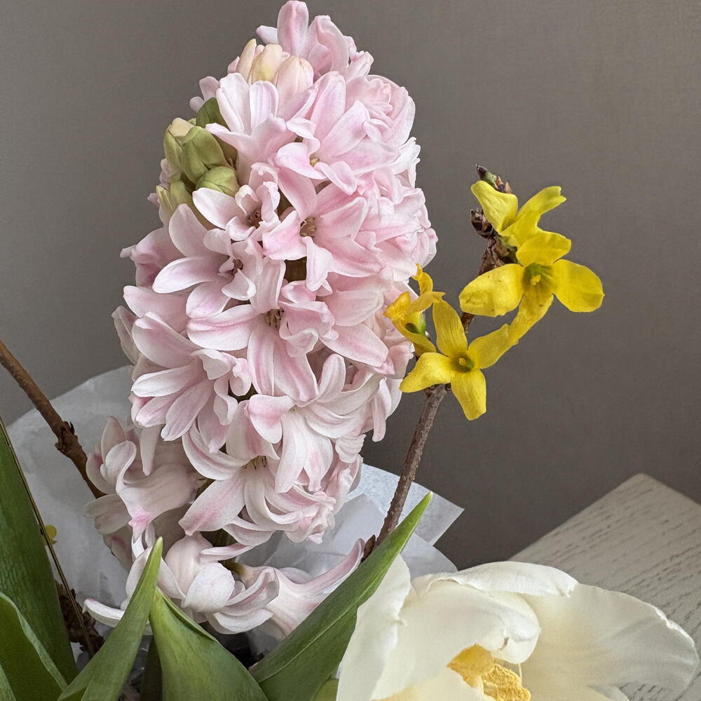 Купить композиция в шляпной коробке. Купить Букеты, композиции, свежие фермерские цветы Весенние первоцветы, Композиция в шляпной коробке
