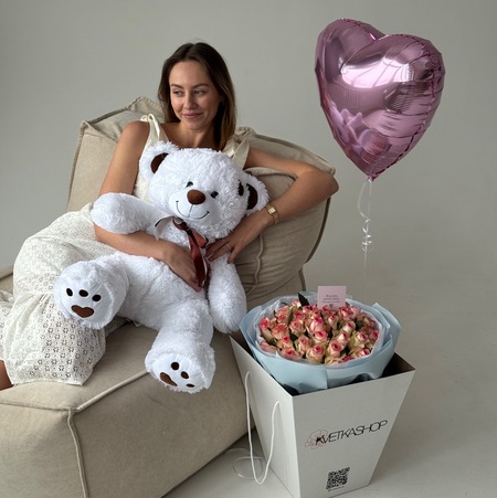 Букет роз+ МИШКА "Необыкновенная" 25 роз