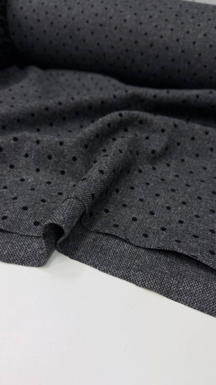 Костюмная полушерсть в горошек, Графит