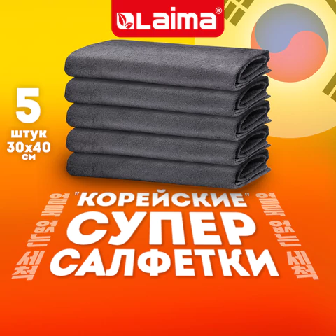 Салфетка КОРЕЙСКАЯ УМНАЯ для авто УБОРКА БЕЗ РАЗВОДОВ, 30х40 см, НАБОР 5 штук, УНИВЕРСАЛЬНАЯ, LAIMA, 700223 LAIMA Цена с НДС за 1 упаковку 5 штук (Китай)