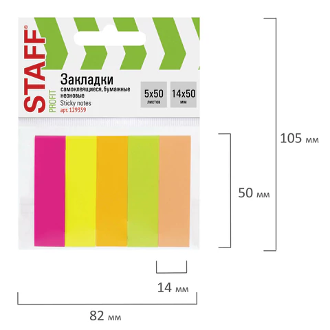 Купить закладки клейкие неоновые staff бумажные, 50х14 мм, 250 штук (5 цветов х 50 листов), 129359 staff цена с ндс за 1 упаковку. Купить Канцелярские товары Бумага и бумажная продукция для дома, офиса, производства Блоки для записей, закладки, STAFF Цена с НДС за 1 упаковку