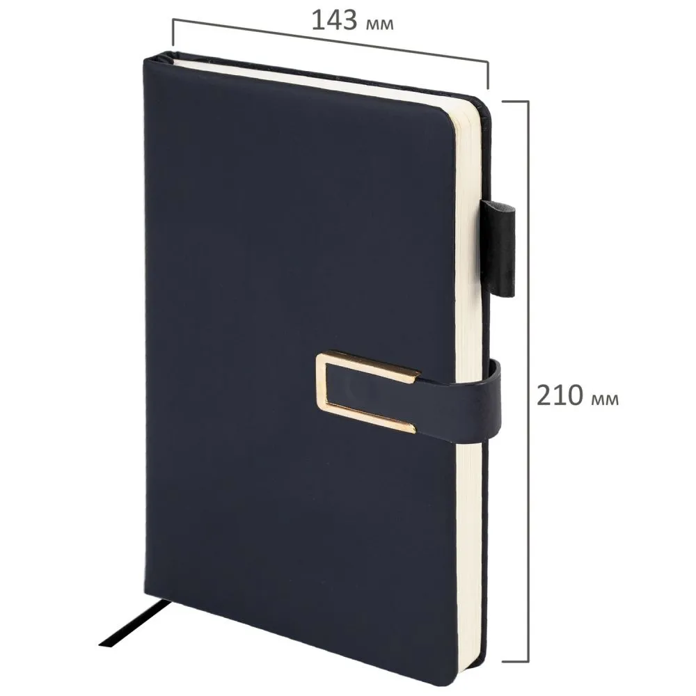 Ежедневник недатированный, А5, 143х210 мм, BRAUBERG "Dainty", под кожу, магнитная застежка, 160 л., черный, 117141 BRAUBERG Цена с НДС за 1 штуку (Китай)