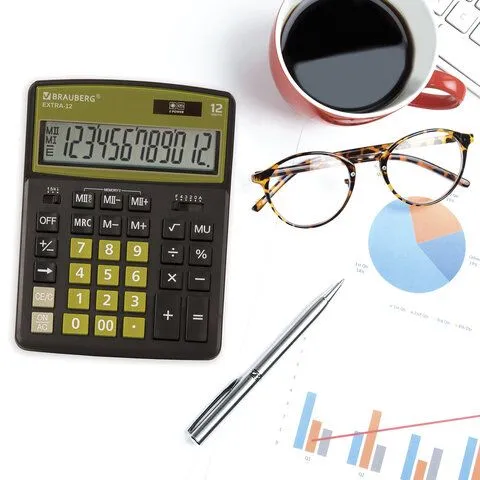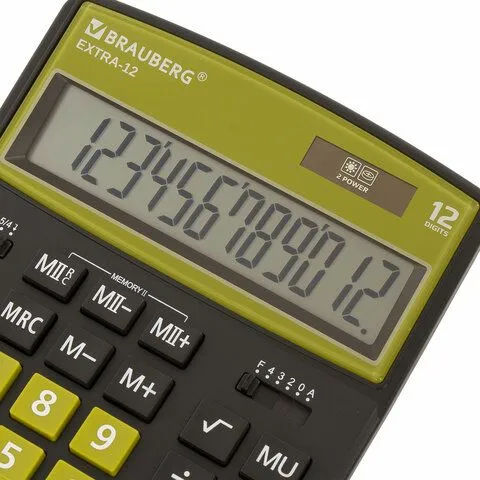 Калькулятор настольный EXTRA-12-BKOL (206x155 мм), 12 разрядов, двойное питание, ЧЕРНО-ОЛИВКОВЫЙ, 250471 BRAUBERG Цена с НДС за 1 штуку (Китай)