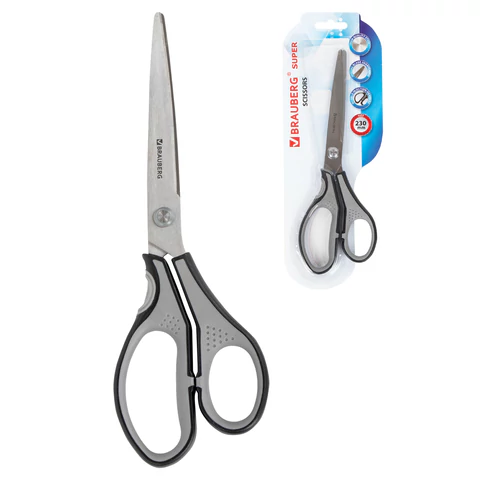 Ножницы BRAUBERG "SUPER", 230 мм, серо-черные, 2-х сторонняя заточка, эргономичные ручки, 237297 BRAUBERG Цена с НДС за 1 штуку