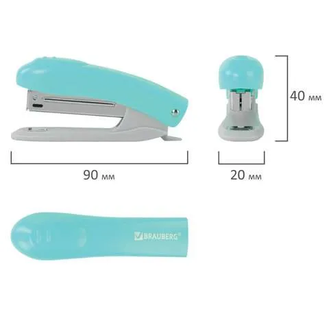 Степлер №10 BRAUBERG "Original", до 12 листов, с антистеплером, бирюзовый, 227765 BRAUBERG Цена с НДС за 1 штуку (Китай)