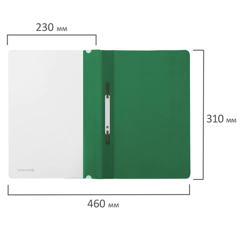 Скоросшиватель пластиковый BRAUBERG, А4, 130/180 мкм, зеленый, 220414 BRAUBERG Цена с НДС за 1 штуку (Китай)