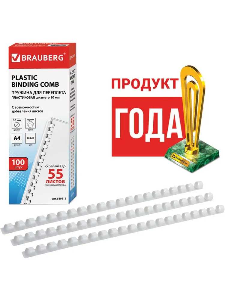 Купить пружины пластиковые для переплета, комплект 100 шт., 10 мм (для сшивания 41-55 л.), белые, 530812 brauberg цена с ндс за 1 упаковку 100 штук. Купить Канцелярские товары Расходники для ламинаторов и перфораторов (пленки для ламинирования, обложки для переплета, пружины), BRAUBERG Цена с НДС за 1 упаковку 100 штук
