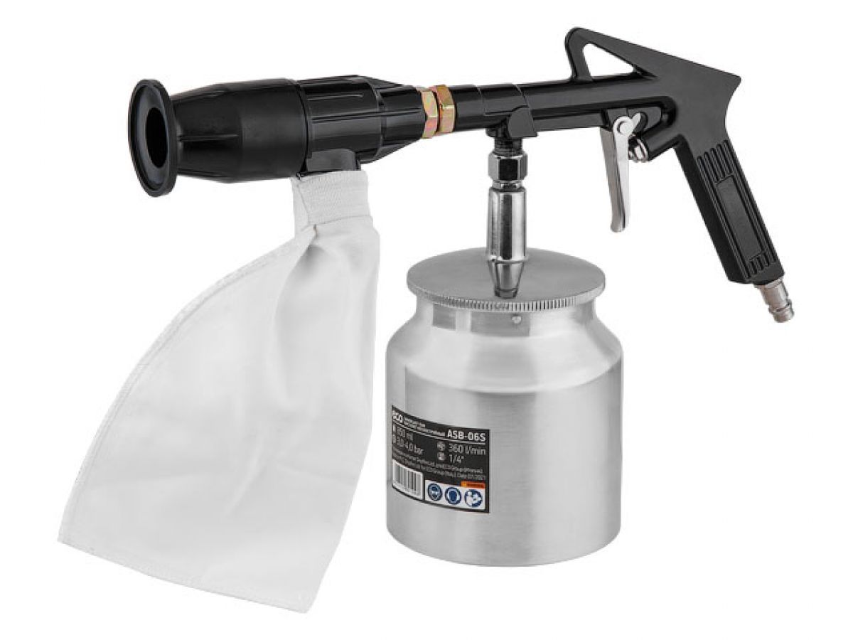 Пистолет пескоструйный с баком (Рабочее давление: 3-4 бар, 360 л/мин, Резервуар: 850 мл,) ECO ASB-06S (Китай)