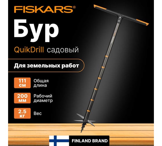 Купить бур садовый большой (рабочий диаметр 200 мм) fiskars. Купить Садовый инструмент и техника Буры садовые, FISKARS