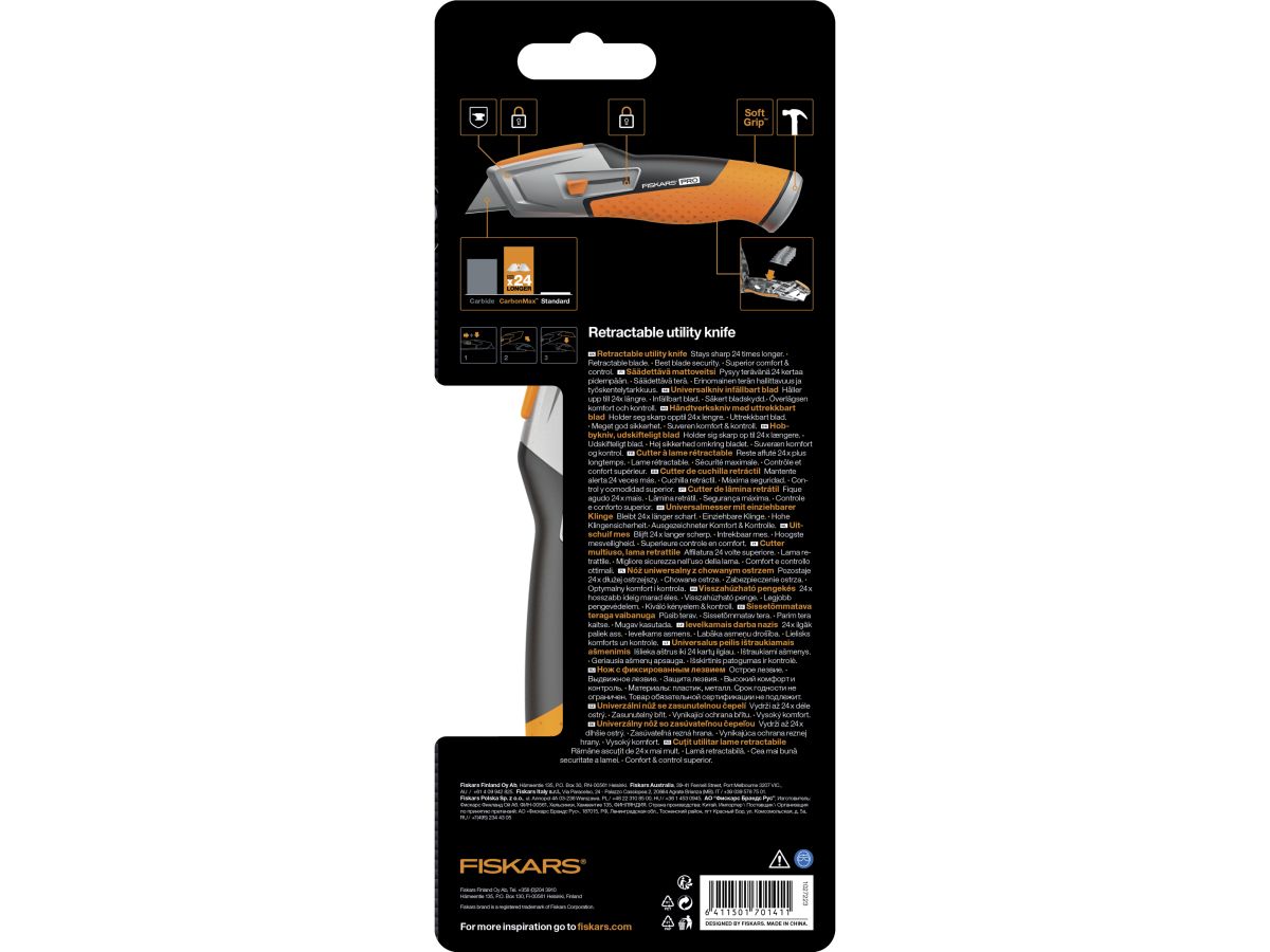 Нож выдвижной, универсальный FISKARS CarbonMax (Китай)