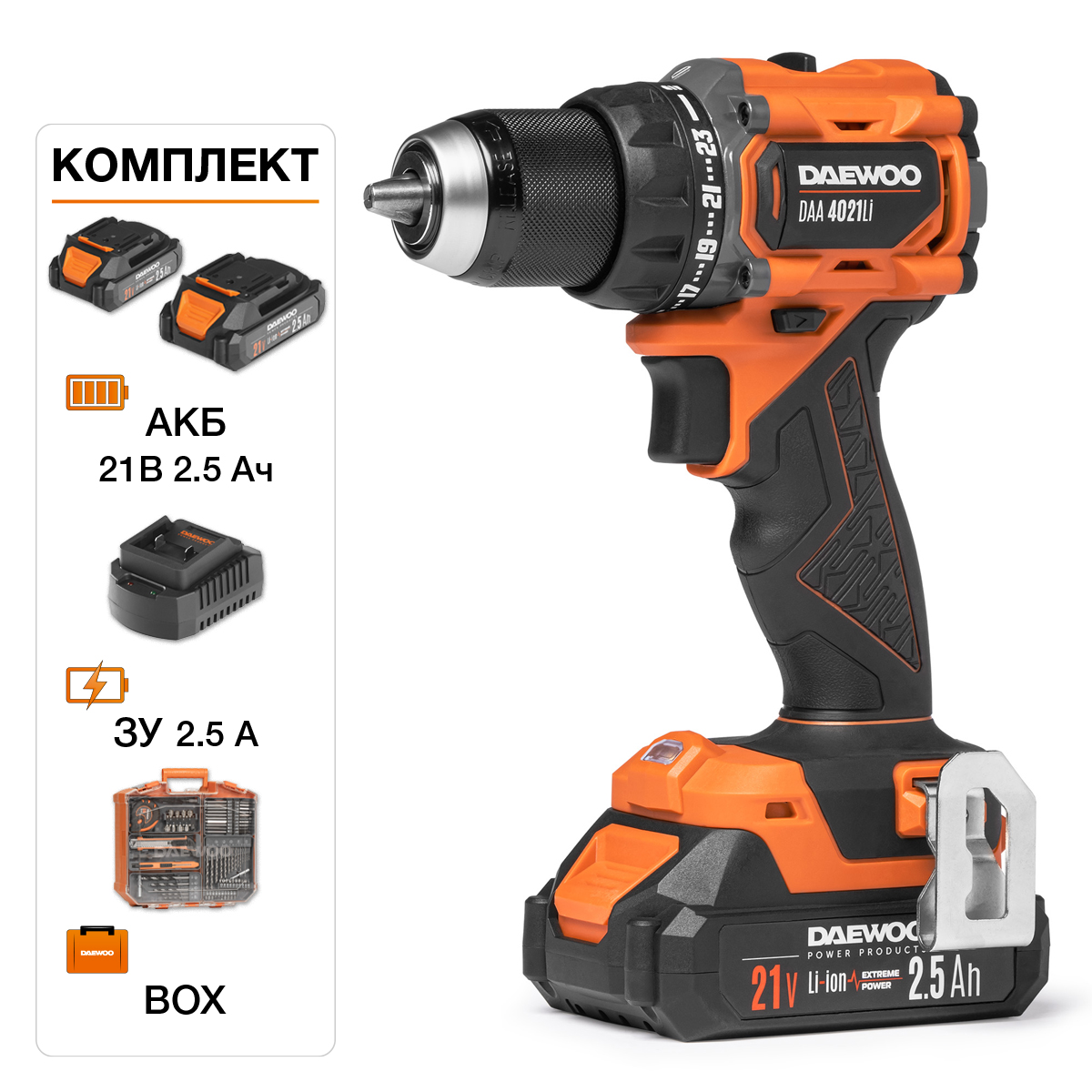 Дрель-шуруповерт аккумуляторная DAA 4021Li SET BOX Daewoo Power (Китай)