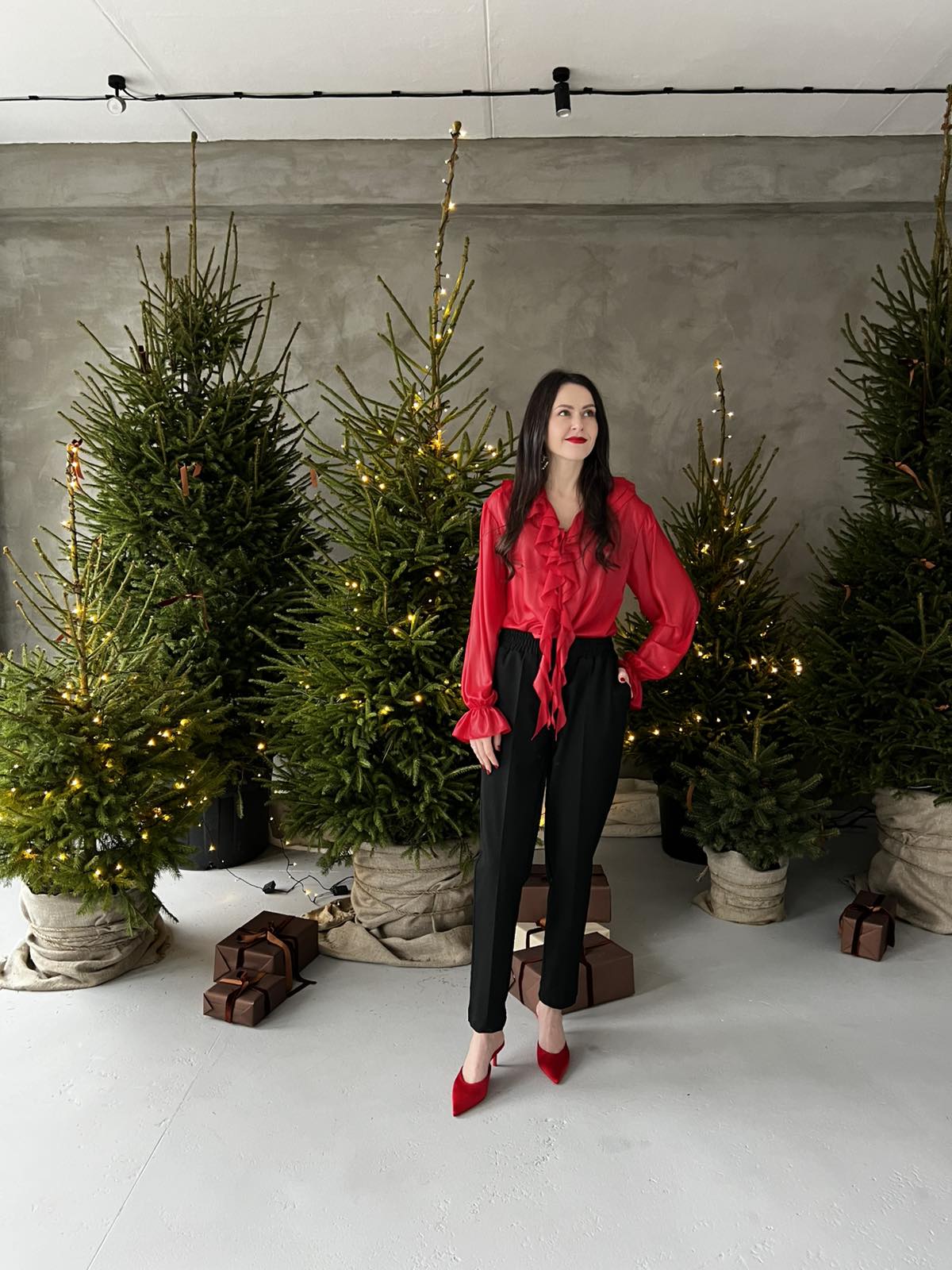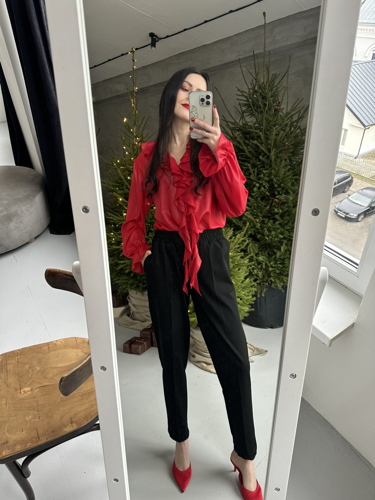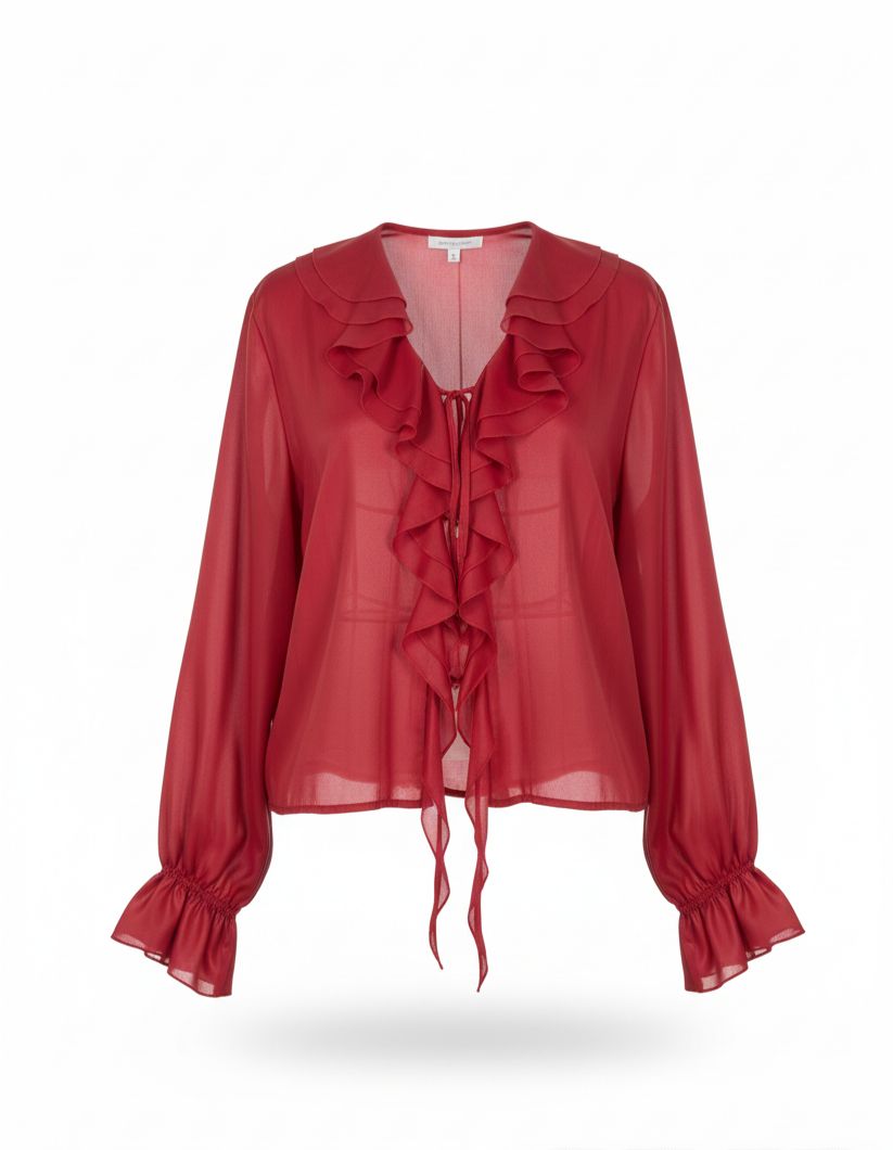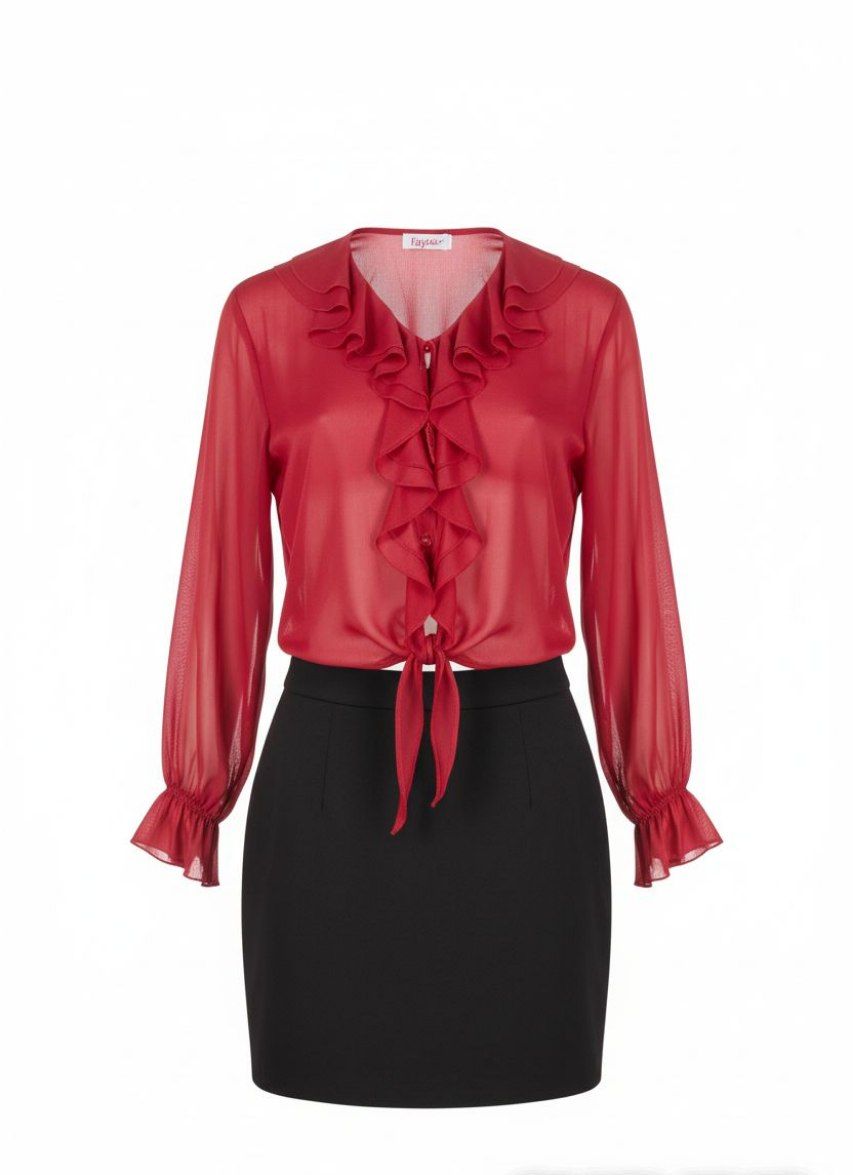 - Женская шифоновая блуза с кожаным блеском