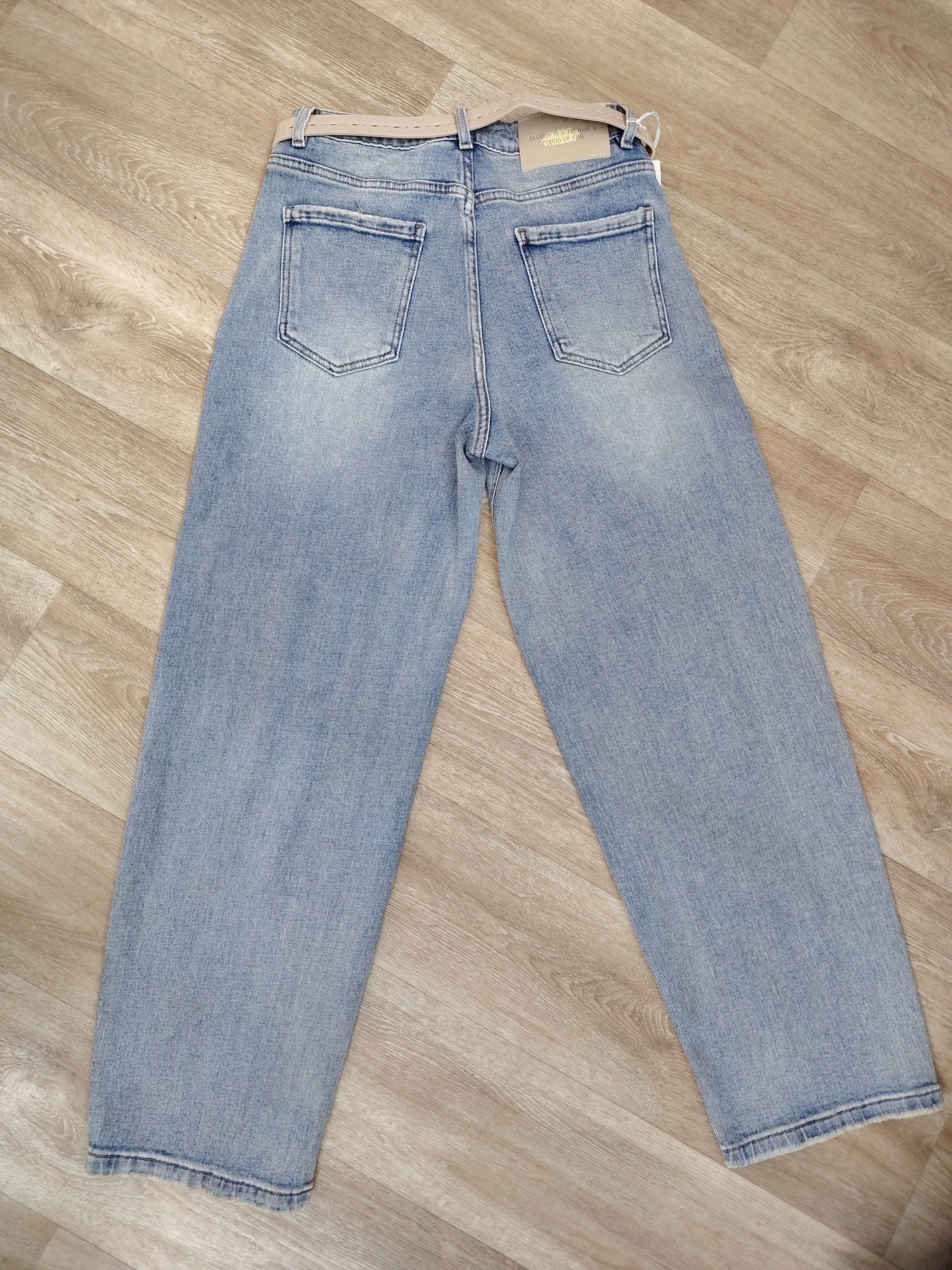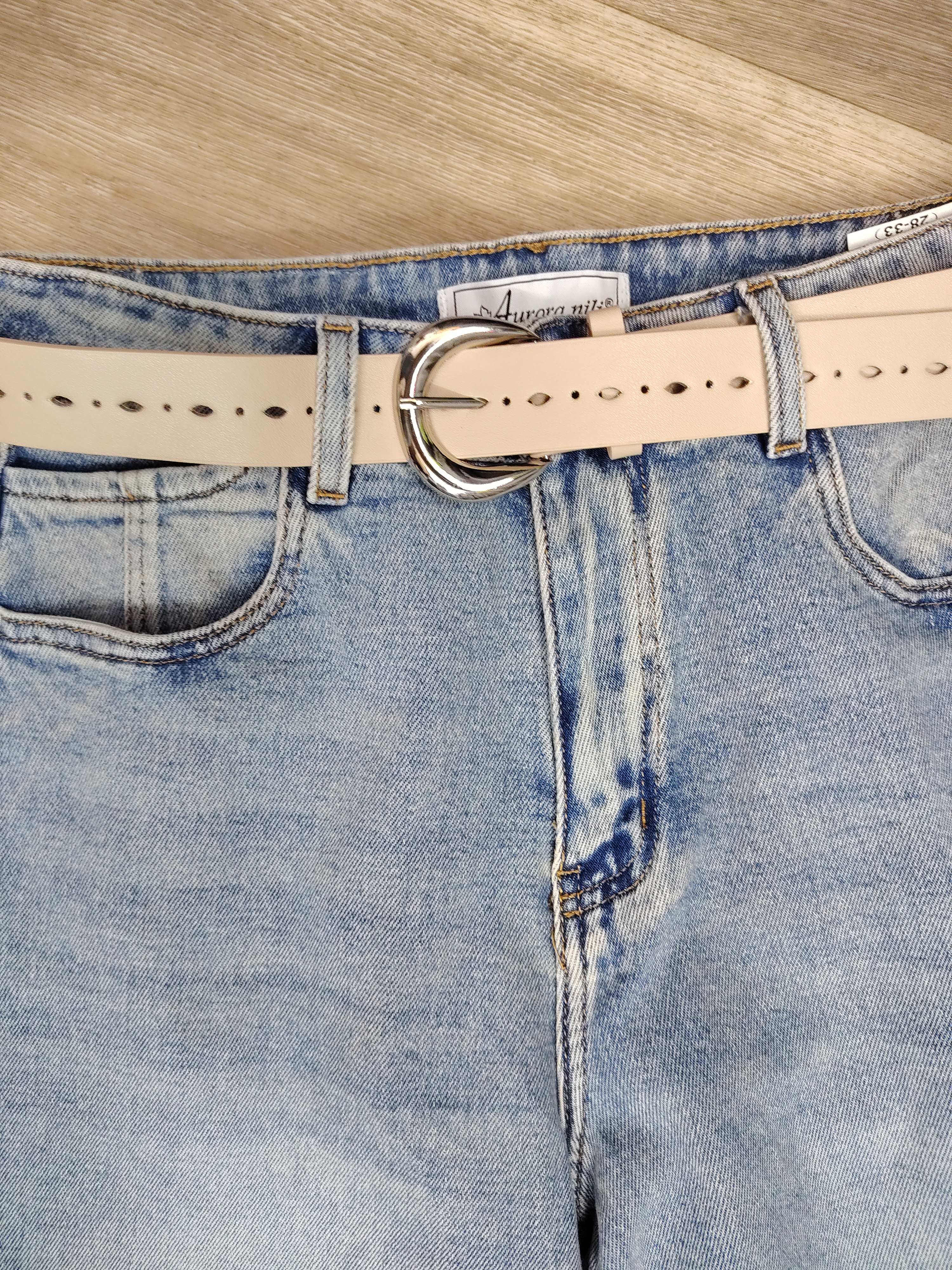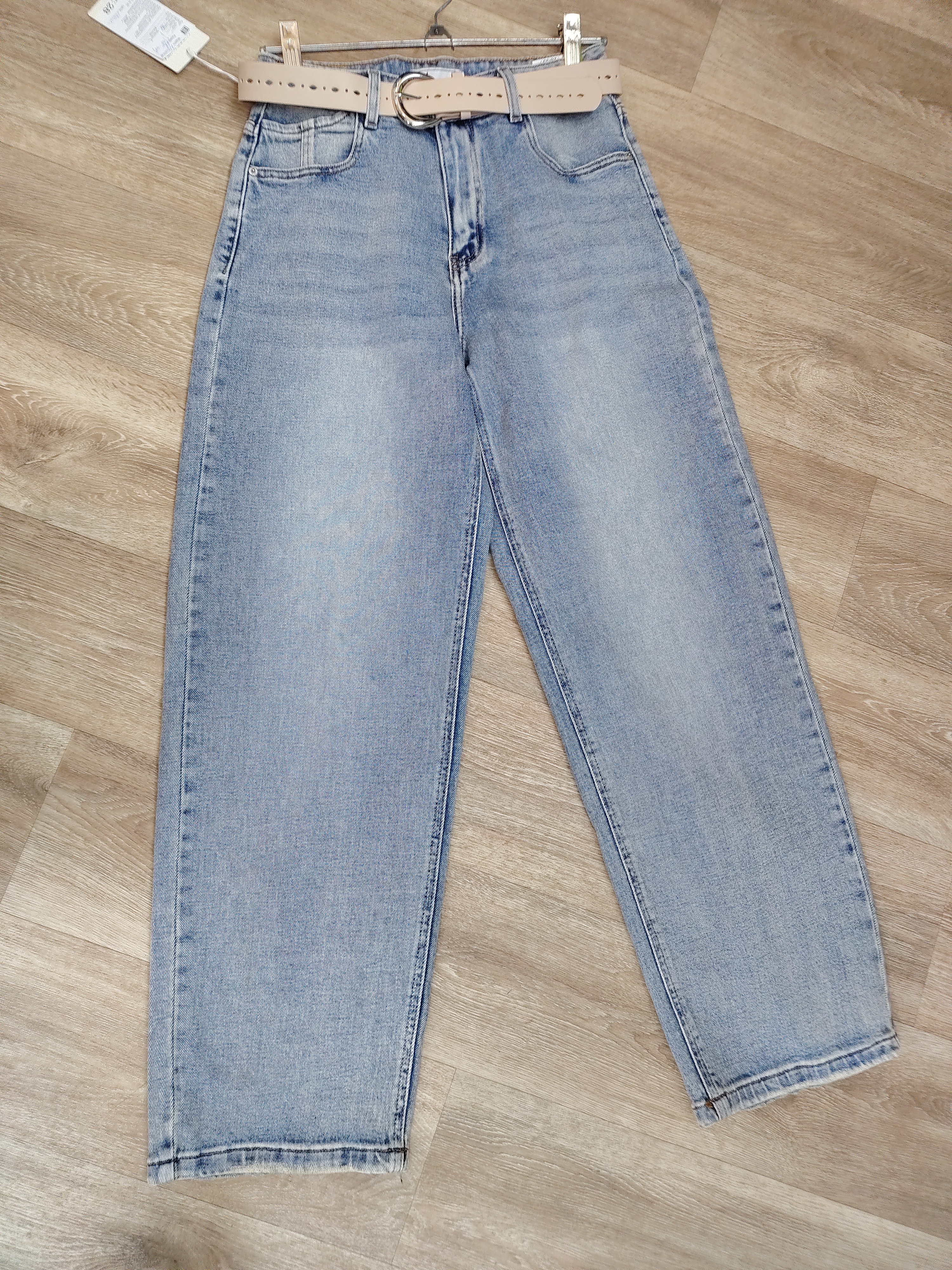 Джинсы свободного кроя светло-голубые с эффектом потёртости AURORA NILI (Китай)