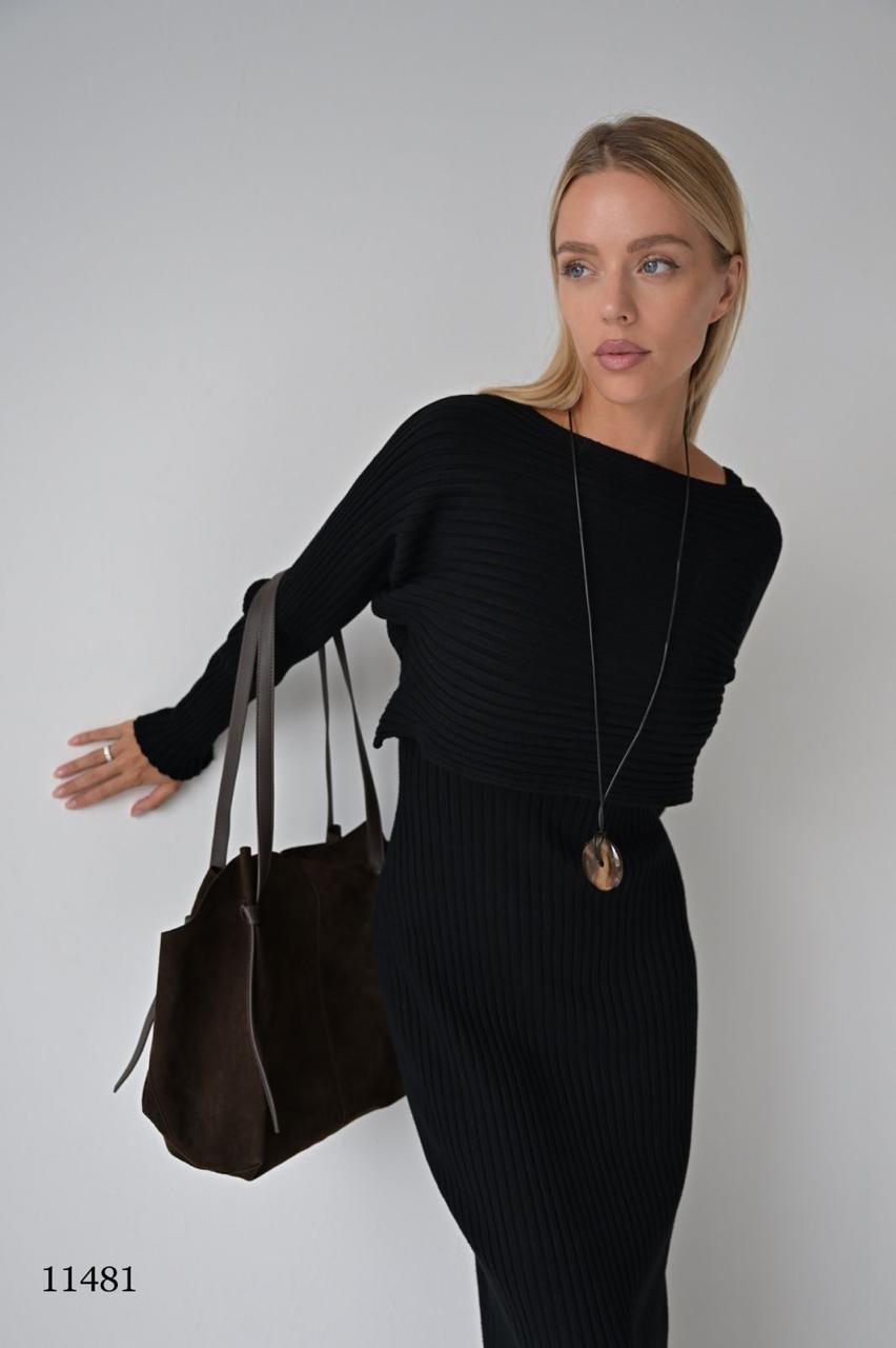 Комплект женский — платье на лямках + укороченный лонгслив, трикотаж в рубчик, черный MISS DIVA (Россия)
